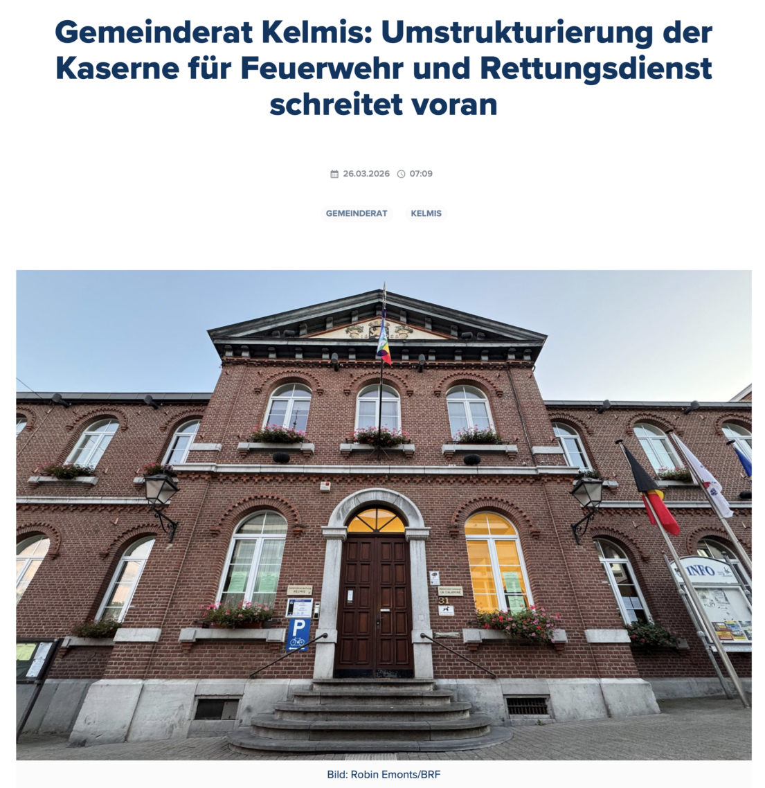 Die Umstrukturierung der Kaserne von Feuerwehr und Rettungsdienst in Kelmis schreitet weiter voran. Der Gemeinderat verabschiedete einstimmig eine Nutzungsvereinbarung zwischen der Gemeinde und der Lokalsektion des Roten Kreuzes Kelmis.